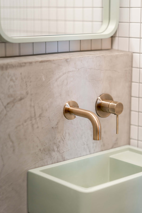 Meir gouden wandkraanset met uitloop 13 cm en mengkraan kort
